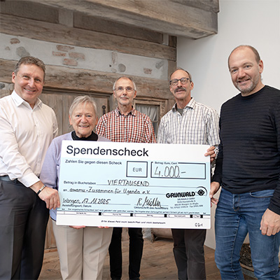 Anstelle von Weihnachtsgeschenken spendete GRUNWALD 8.000 Euro an zwei Einrichtungen in Wangen. Damit lässt Geschäftsführer Ralf Müller andere am Erfolg des Unternehmens teilhaben. Mit unserer Spende in Höhe von 4.000 Euro an „awamu – zusammen für Uganda e.V.“ leistet GRUNWALD konkrete Hilfe für die Menschen in Uganda. Seit 1999 unterstützt der Wangener Hilfeverein die Bevölkerung in den ländlichen Gebieten nahe der Stadt Masaka. Konkret geht es z.B. um den Bau und Erhalt von Gesundheitsstationen, Grundschulen mit deren Unterkünften für Lehrkräfte sowie den Schülerinnen und Schülern. Es werden Gelder für dringend notwendige Reparaturen und zur Erweiterung der Räume benötigt. Auch für den Bau von Brunnen besteht weiterhin großer Bedarf, damit die Bevölkerung in den Dörfern gesicherten Zugang zu Trinkwasser erhält.Mit unserer diesjährigen Spende unterstützt GRUNWALD erneut die wertvolle Arbeit von „awamu – zusammen für Uganda e.V.“ und ermöglicht Lösungen für Herausforderungen, die für viele Menschen kaum zu bewältigen sind.